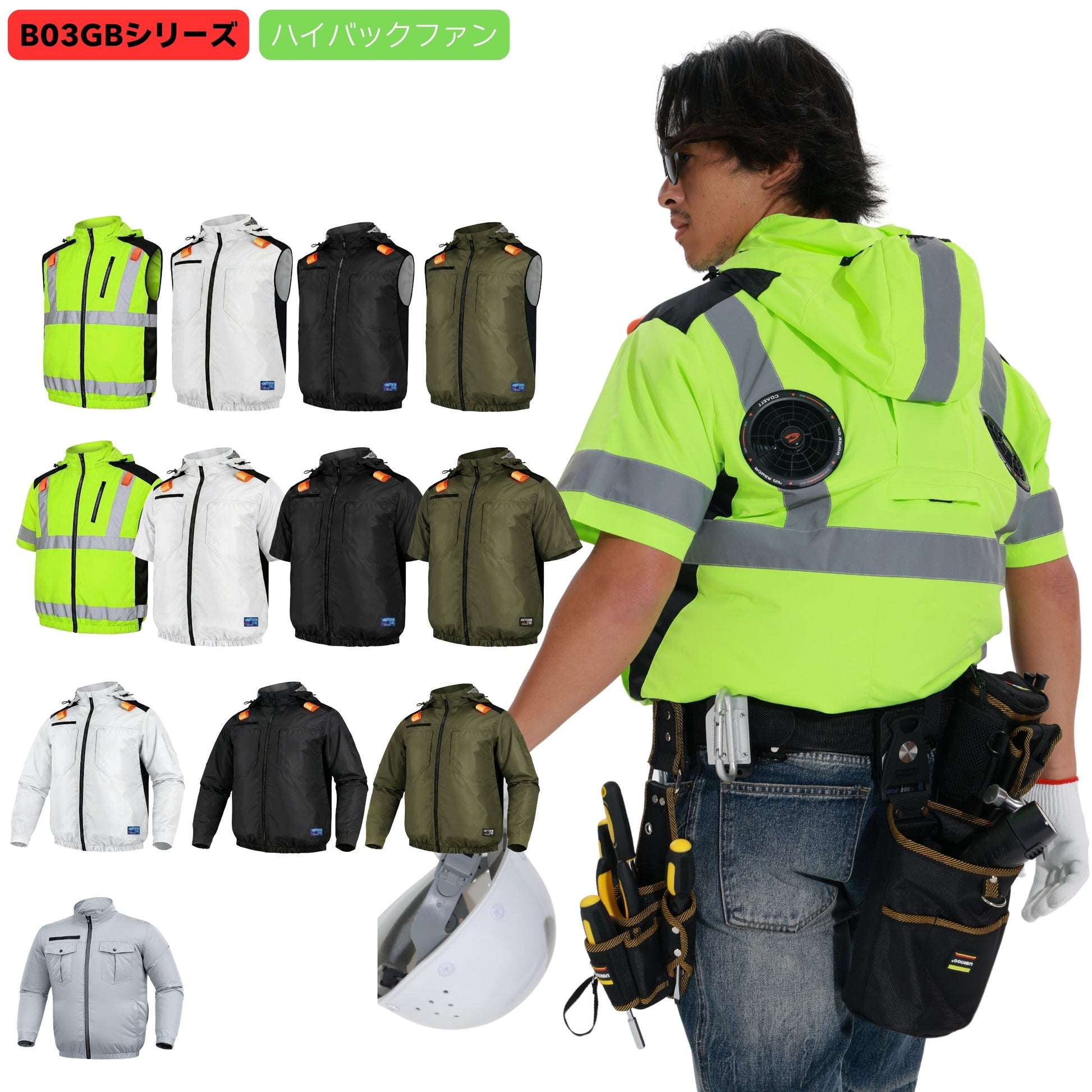 空調冷風服【ハイバックファン、ポリエステル100%、12カラー、S~7L】